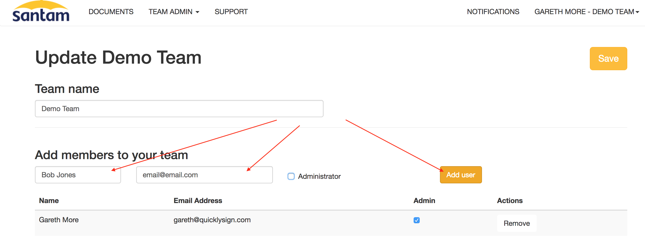 By adding a user as an administrator, the new user will be able to see, add and remove all team members.